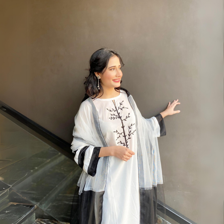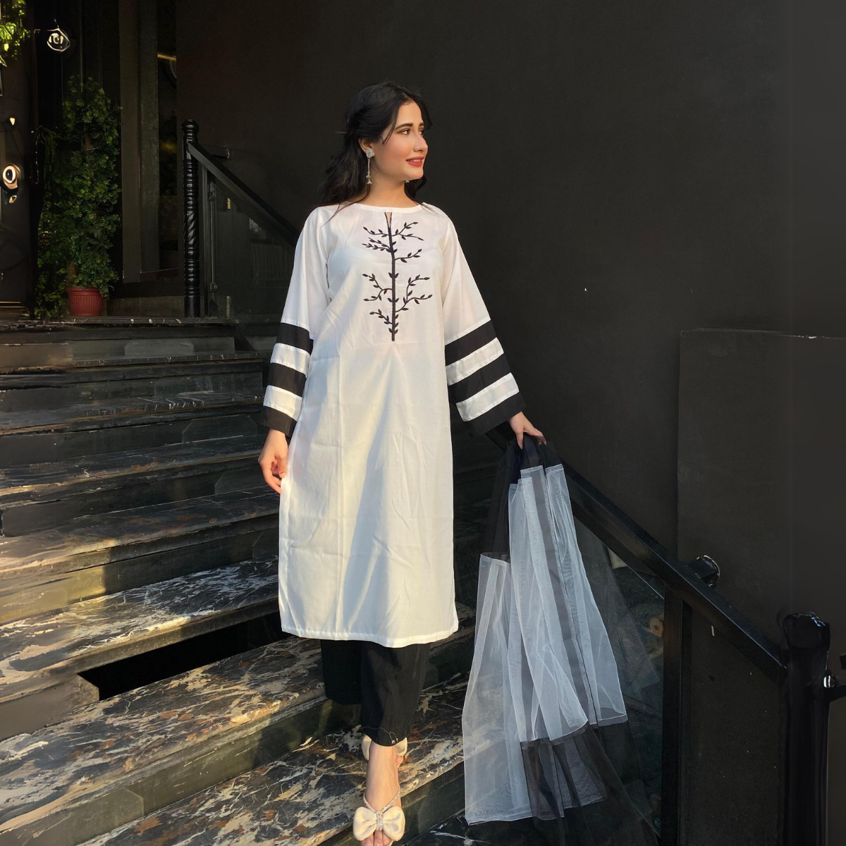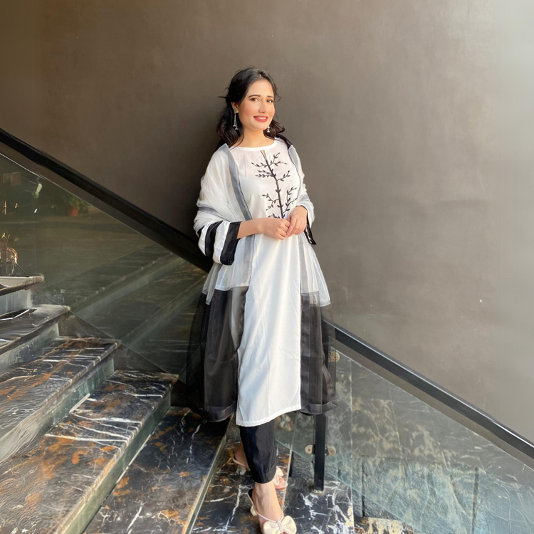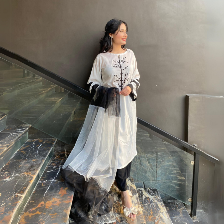 Indulge in the allure of 'Diamond White' and let your style shine bright like a diamond. Elevate your fashion game with this exquisite ensemble, where luxury meets sophistication."
