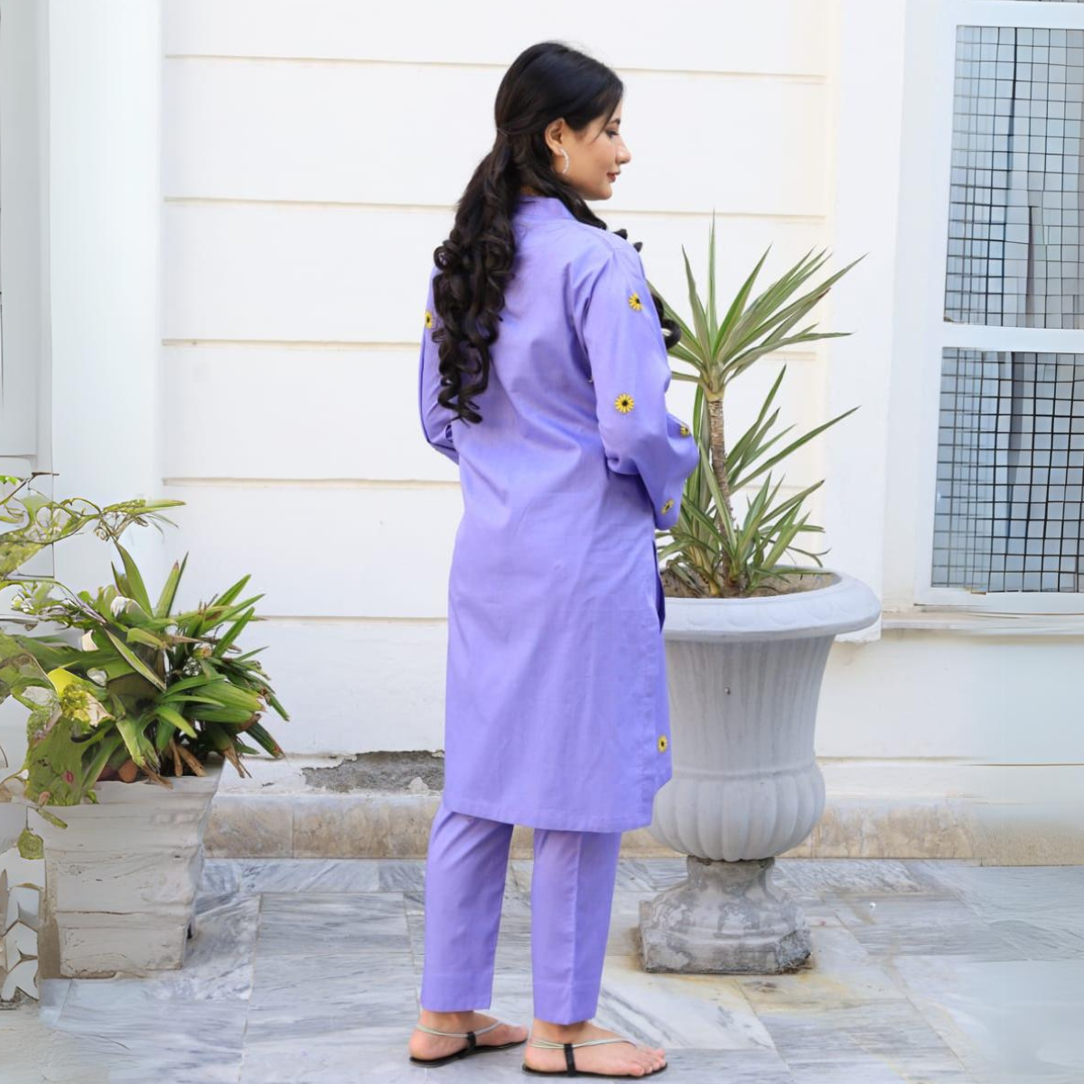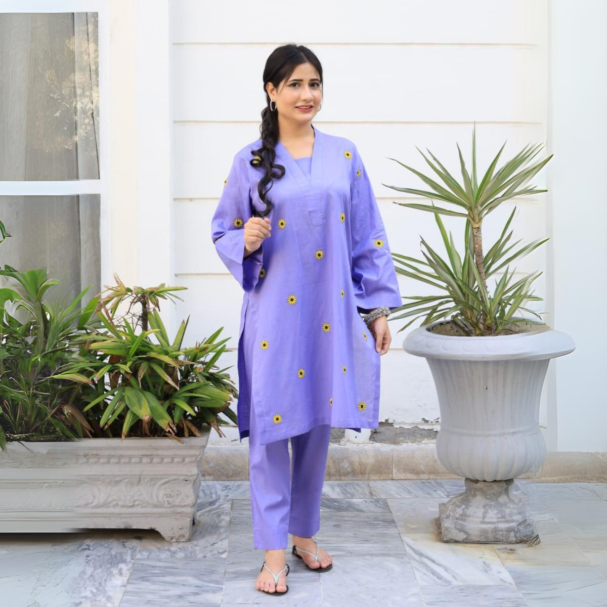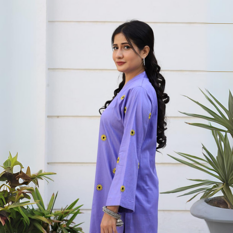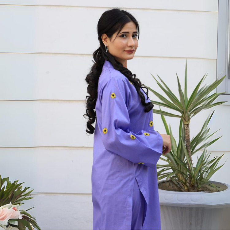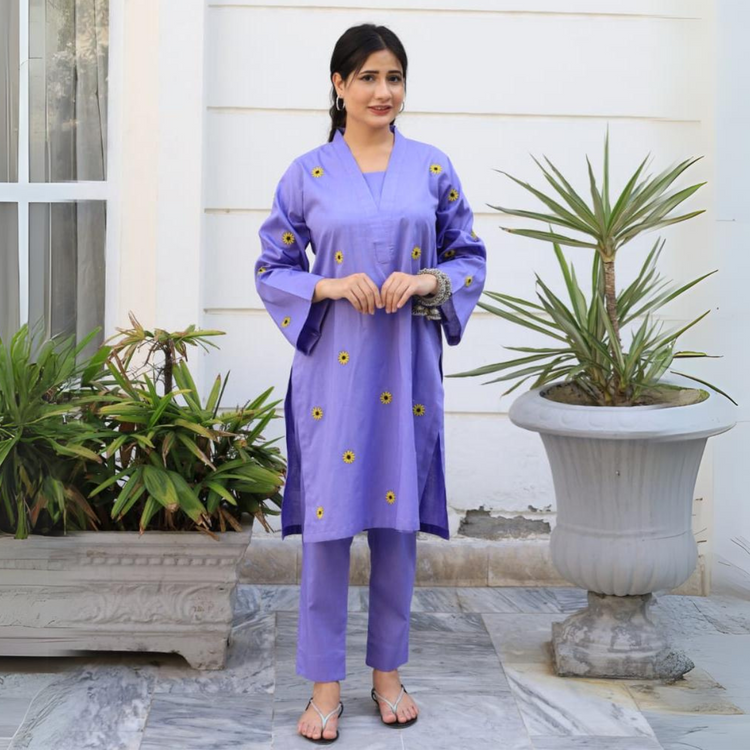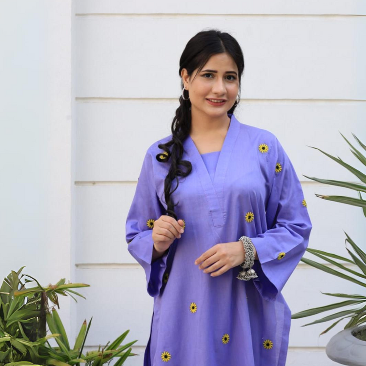 Fabric: Lightweight and breathable cotton loan fabric Color: lilac Style: A two-piece (embroidery) Care: Ensure that the dress is easy to care for, preferably machine washable to maintain its freshness...