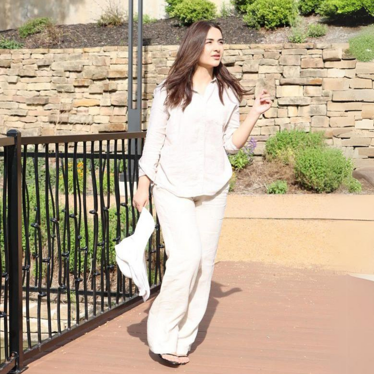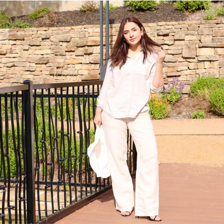 Dreamy in Porceline, our Collar Cut Out Blouse merges elegance with charm. Embrace sophistication with every button.This pajama-style button-up blouse features a notch collar, and white buttons. It's made from cotton fabric with a slight sheen.
