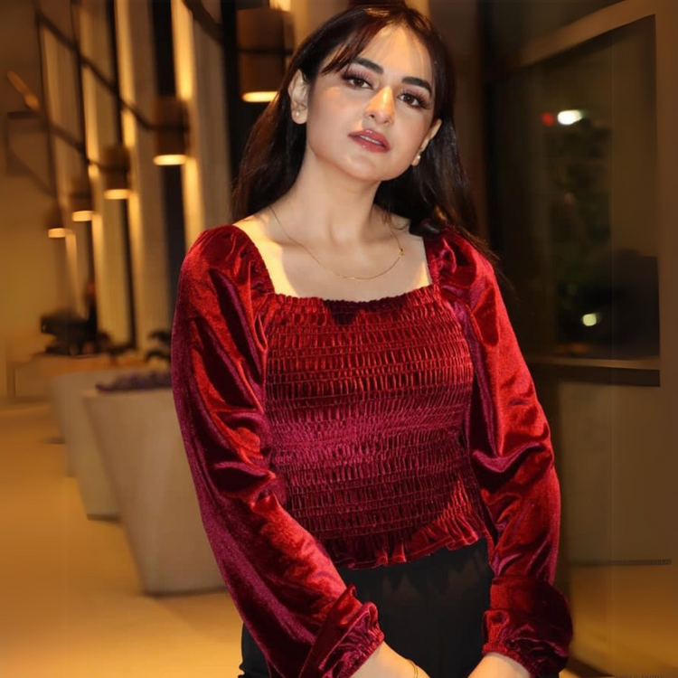 "Maroon Velvet Crop Top"
