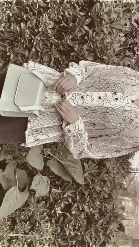 This lightweight and airy sheer blouse features a striking black and white outline floral print (line art print). Designed with a classic collar and full button-down front (with contrasting black buttons), this shirt offers a chic, artistic, and versatile style.