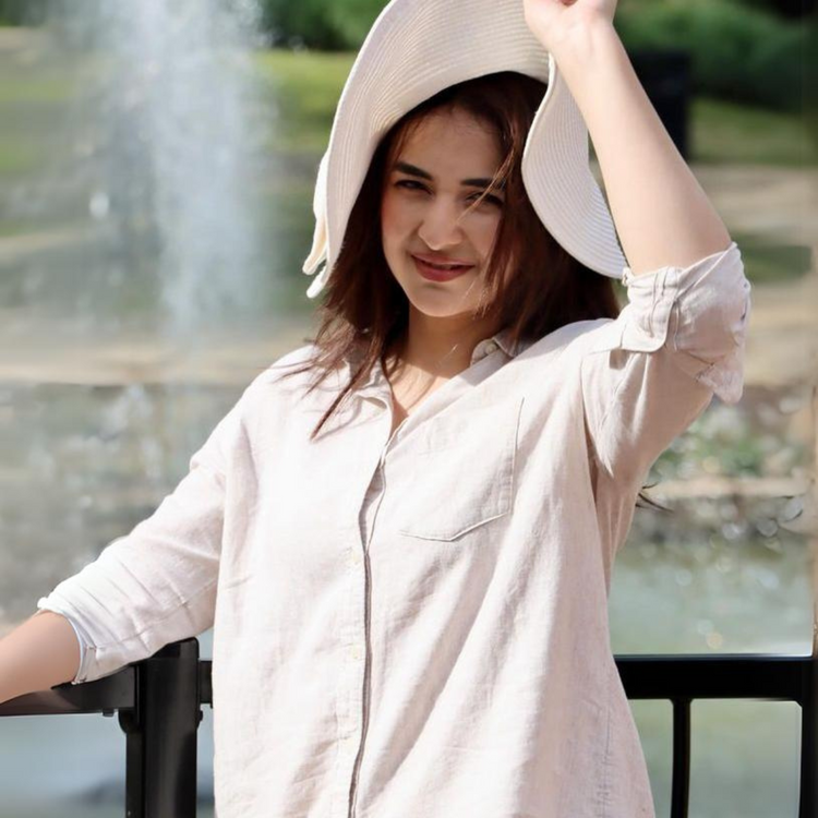 Dreamy in Porceline, our Collar Cut Out Blouse merges elegance with charm. Embrace sophistication with every button.This pajama-style button-up blouse features a notch collar, and white buttons. It's made from cotton fabric with a slight sheen.