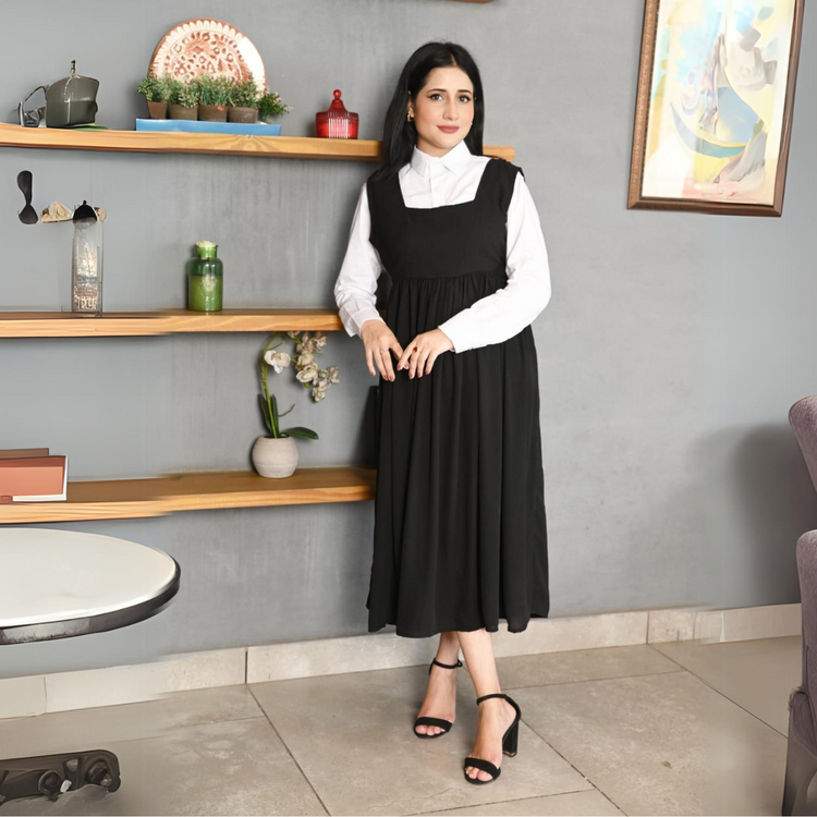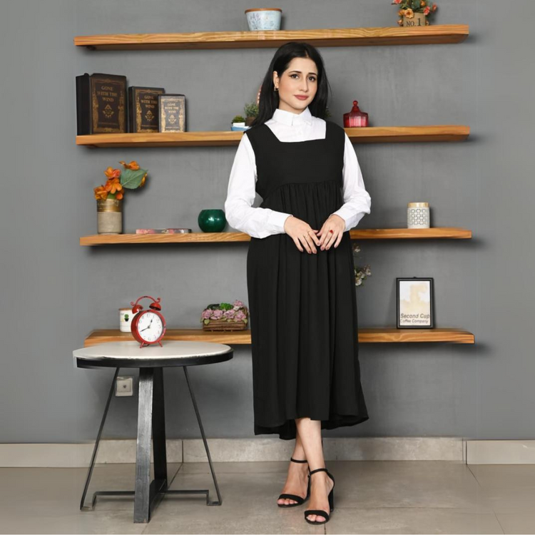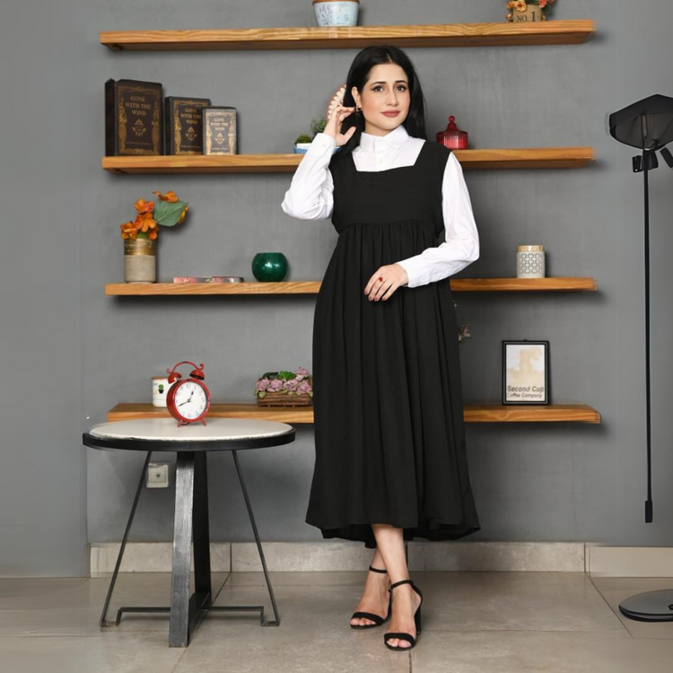 Elevate your elegance with our Collar Cut Out Blouse in classic white & Upper is classic Black. This Dress is designed with meticulous details, offering a perfect blend of style and sophistication.