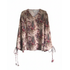 A feminine and vibrant top featuring an all-over rich floral print in shades of burgundy, pink, and green. This blouse is designed with a flattering V-neckline and long sleeves that have a stylish split-cuff detail secured by elegant fabric ties. Perfect for adding a touch of romance to your everyday look, or dressing up for a weekend outing.